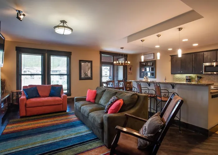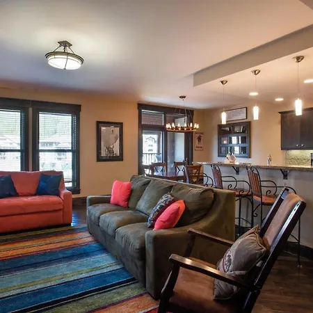 The 3-bedroom Spacious Village View Townhouse With Fireplace At Parry Peak Lofts Townhouse is nestled approximately a 10-minute ride from Prospector Express and provides a Jacuzzi. Featuring ski equipment rentals, the property invites guests to visit Main Street, situated nearly a 15-minute walk away.